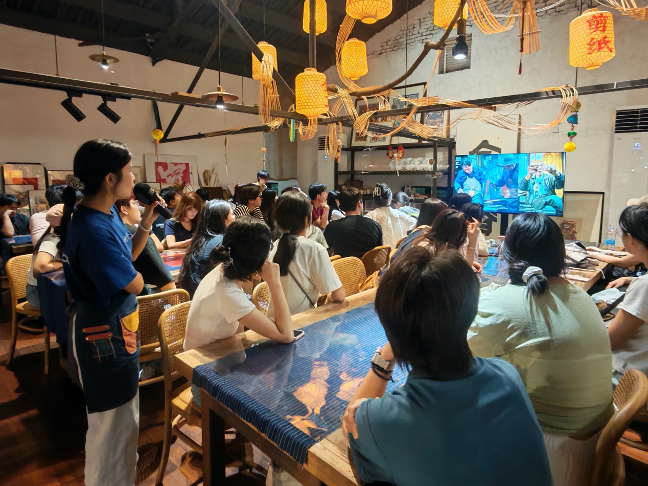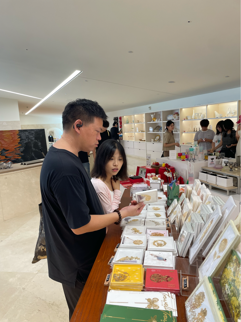 在南京博物馆,师生重点研习馆藏文物衍生文创产品开发案例,直观领悟专业实践路径;杭州行中,团队深入自然造物民艺研究中心及中国美术学院,通过非遗文创专题讲座与"靳埭强创意六十年展""乡村手工艺振兴案例展"观摩,系统掌握传统手工艺创新转化方法,提升传统文化元素现代设计应用能力。