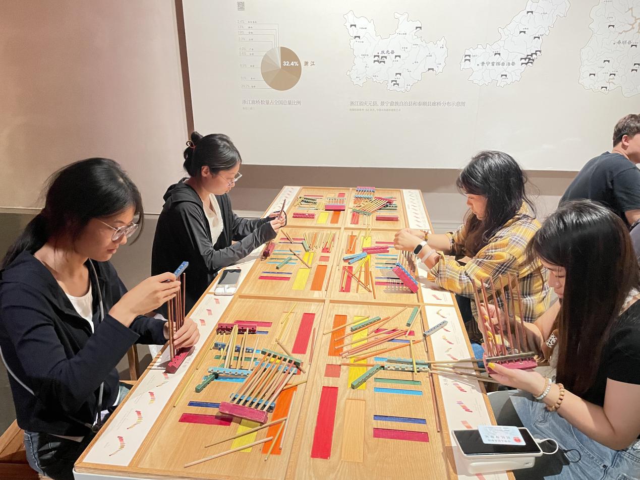 视传学生在浙江博物馆进行木拱廊桥互动学习